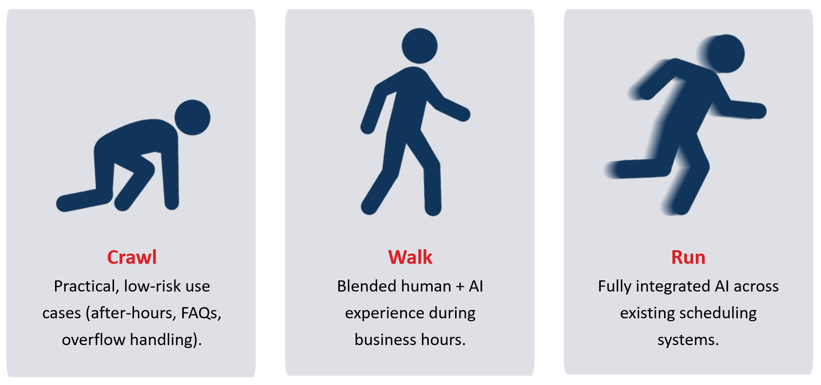 What the Crawl–Walk–Run Approach Means for AI Receptionists